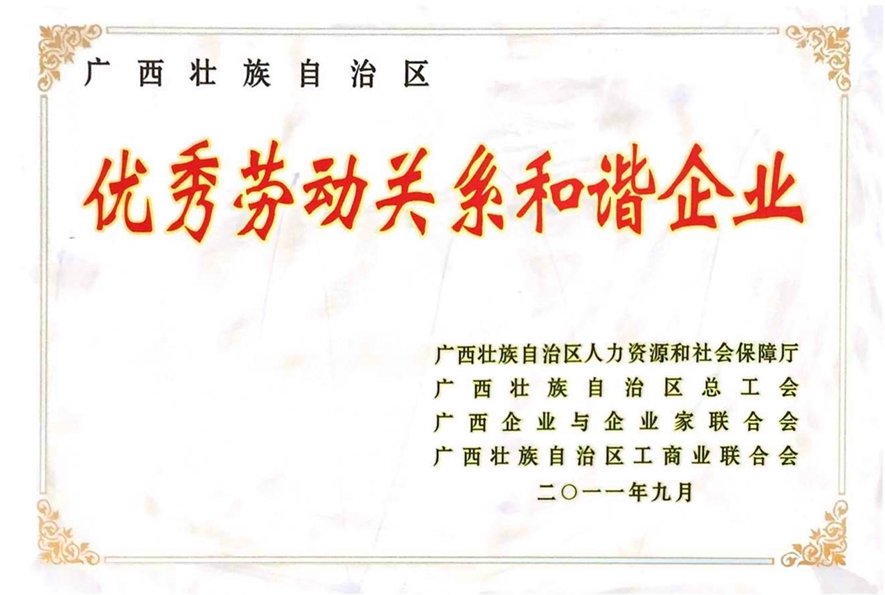 廣西壯族自治區優(yōu)秀勞動關系和諧企業